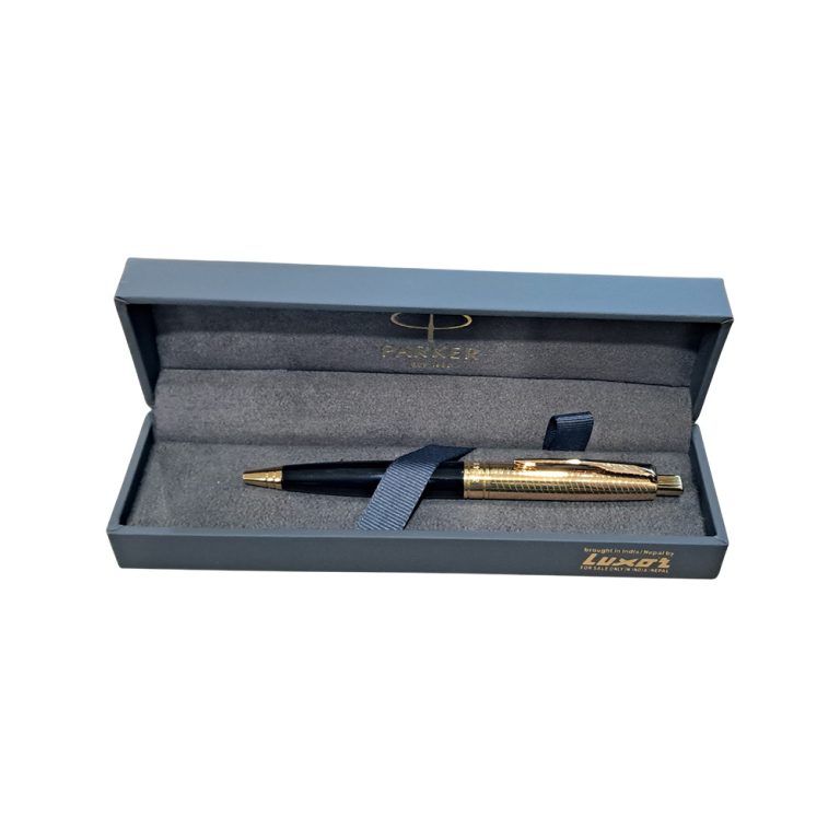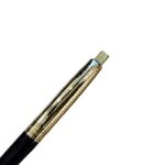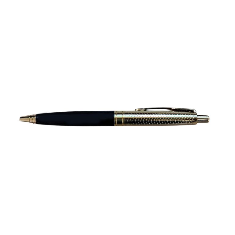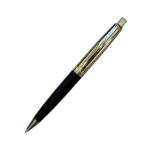 The Parker Aster Black & Chrome Contemporary GT Ball Pen is part of the Parker Aster Premium collection. Parker presents this Aster Contemporary ball pen that looks elegant with its lacquered black barrel. The brushed golden finish at the gripping section ensures a comfortable grip and an enjoyable writing experience. The golden accents on the satin silver lacquered cap further add to the appeal of this fine writing instrument. This is a top button on/cap off pen that used with replaceable QuinkFlow refill.