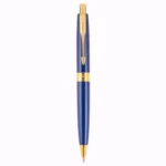Parker Aster Ball Pen With Matt Blue Finish Metal Barrel And Gold Plated Trim. A Contemporary & Unique Design Blended Highlighted With A Gold Plated Ring On The Barrel. Material: Matte Finish metal barrel and Gold plated Trim. Gold Plated Ring On The Barrel A contemporary and unique design blended highlighted with a gold plated ring on the barrel Engraved text will be in Gold colour Made in India